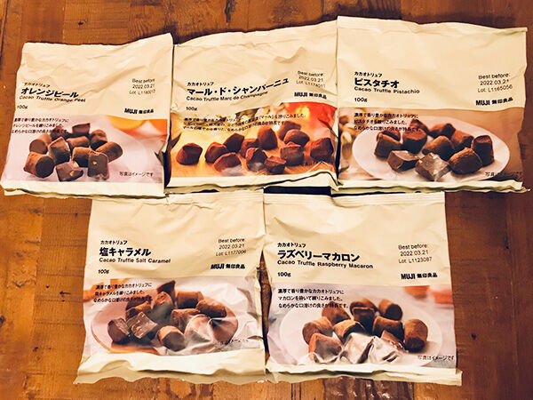 無印良品で見つけた『カカオトリュフ』は5種類。