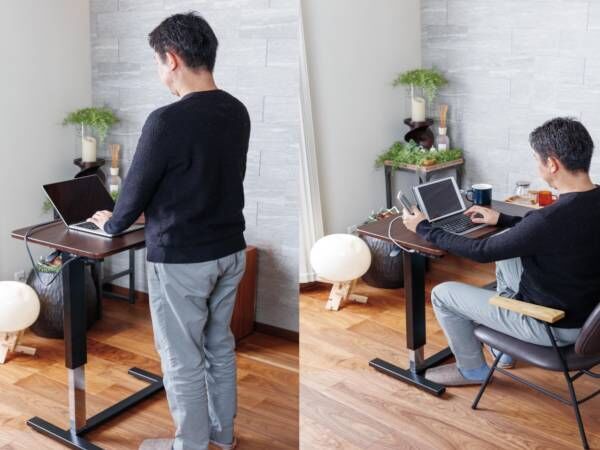 また、設置する場所や使用シーンに合わせて、テーブルの天板の高さを調整できるところも大きな魅力。