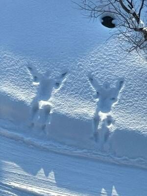 積もった雪の上にダイブした痕跡が、くっきりと残っています!