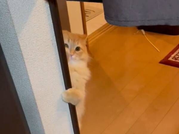 こっそり覗いてたくせに目が合うと逃げる猫(笑) pic.twitter.com/u9xi4cHRns