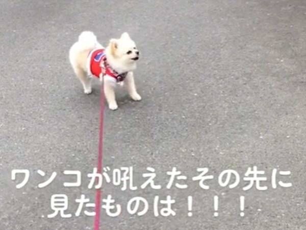 散歩中に突然吠え始めた犬 その相手が「迫力ある」「大きく見える」