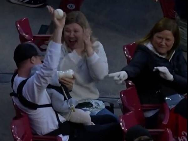 そのボールをキャッチしようと待ち構えていた野球ファンたち。ボールは、ある男性の前に落ちてきたのですが…。