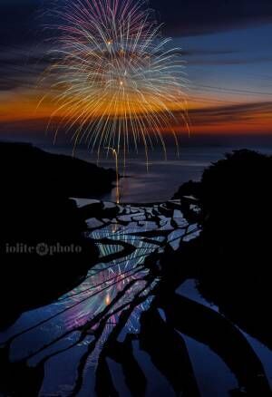 「やっとやっと撮れた」 打ち上げ花火を反射した『棚田』がまさに絶景