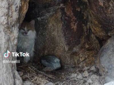 すると猫は岩の間から出て来て、ヒンゼルさんが差し出した手に顔をすり寄せてきたのです。