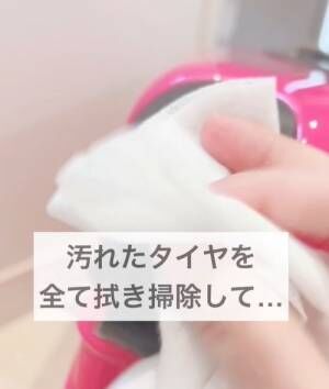 旦那さんはこういったことに無頓着のようなのですが、えみさんは気になるタイプなのだそう。いつも生活に役立つライフハックを発信している身としては黙っていられないのか、タイヤのお手入れを始めました。