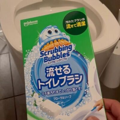 さとぷー夫婦さんがおすすめしているのは、ジョンソン株式会社の「スクラビングバブル流せるトイレブラシ」です。