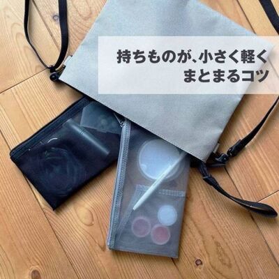 ポーチを小さくすることもテクニックの1つ。ふだん持ち歩いているポーチを、小ぶりなものへ変えるだけでも、荷物は軽くできます。新しいポーチとしておすすめなのは「ポリエステルダブルファスナーケース」であり、以下3タイプが販売されています。