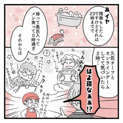 夜更かしのお相手は、いわゆる『オタク』趣味の持ち主として知られる久佐チーフ。きっと2人は連日、寝ぼけ眼をこすりながら、仕事をしているのでしょう…。