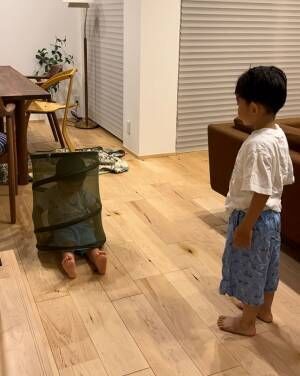 田口ナツミ(@NatsuTagu)さんが育てる、2人の幼い息子さんも、かくれんぼでよく遊んでいるようです。