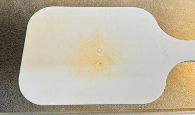 筆者のまな板はかなり年季が入っていたので、「完璧に真っ白に!」とはいきませんでしたが、ほぼ白い状態に戻りました。今回のニンジンから出た色移りはしっかり落ちたという印象です。