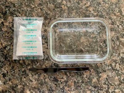 用意するものは、お湯50㎖と耐熱容器、かき混ぜ棒だけです。