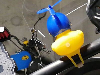 風を受けると、アヒルのヘルメットはプロペラがくるくると回るようです。