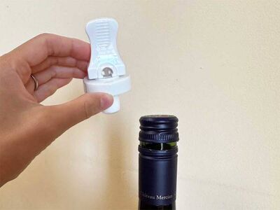 使い方は簡単です。まず、『何度でも使えるボトルキャップ』をワインの瓶にセットします。