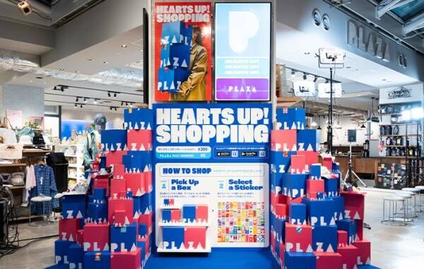 ギフトボックスで買い物ができる『HEARTS UP! SHOPPING』企画は、PLAZA東京店、PLAZA渋谷109店、PLAZA梅田ヘップファイブ店にて、それぞれ期間限定でおこなっています。
