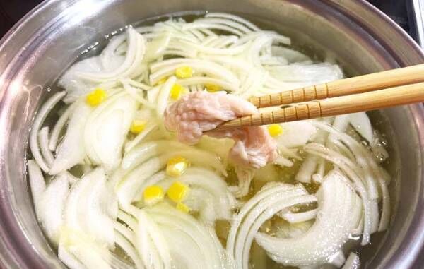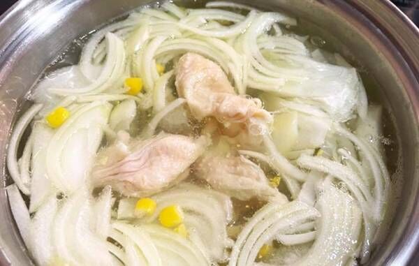 いつも捨てていた鶏皮を、特別おいしくもない平凡な野菜スープに入れて、旨みをプラスしましょう。