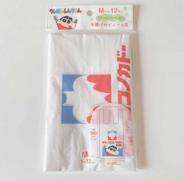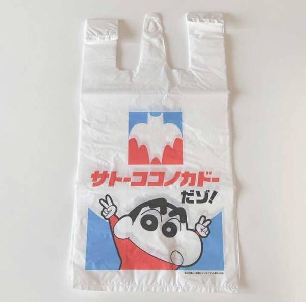 なんと、袋には漫画『クレヨンしんちゃん』に登場するスーパーマーケット『サトーココノカドー』のロゴと文字がプリントされているではありませんか!