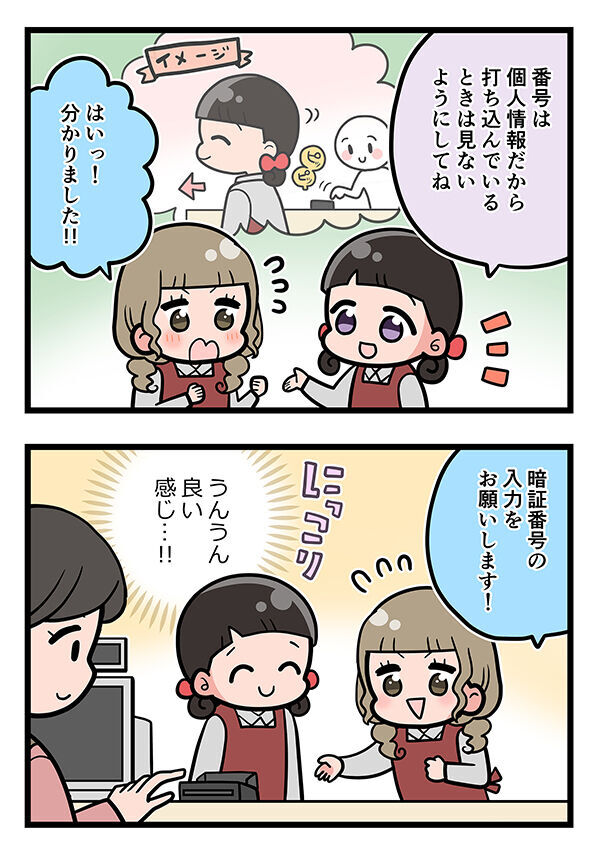 そんな『店員のスキル』を、天霧さんは新人のアルバイトに共有。その結果、レジで見つめ合う2人の店員というシュールすぎる光景が爆誕してしまったのでした…。