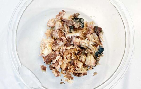 サバ缶は水気をきり、粗めにほぐしておきましょう。