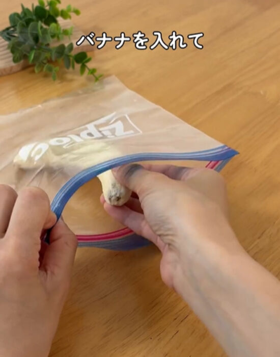 バナナ全体に砂糖と牛乳がなじむように、さらに揉みこんでください。