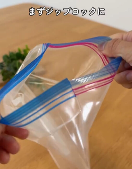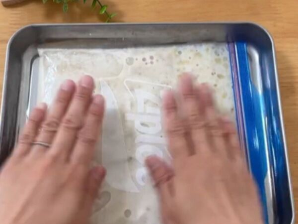 混ぜ合わさったら、フリーザーバッグの空気をしっかりと抜きます。