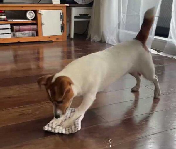 実は、床掃除はうたちゃんの日課で、投稿者さんから『お掃除犬』と称されるほどです。