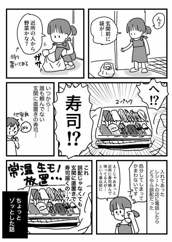 恵水(@WANKOnin)さんが描いたのは、食品の宅配サービスにまつわる、ゾッとした体験談。