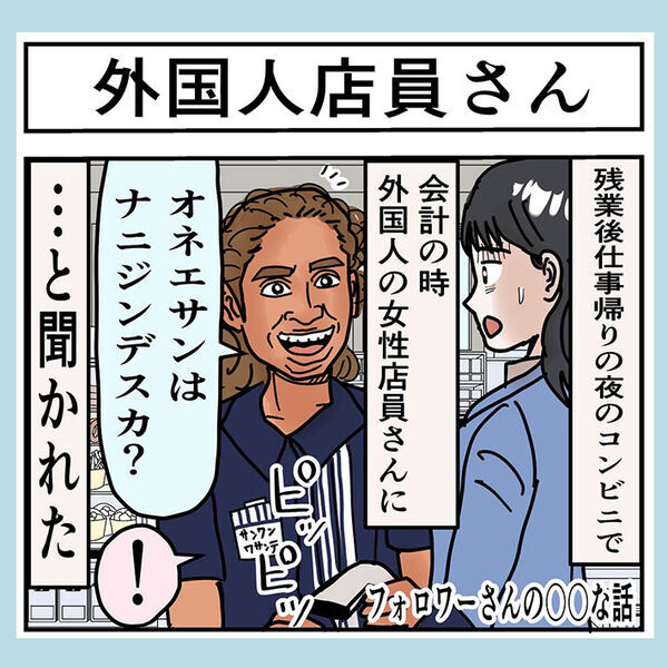 フォロワーから寄せられたエピソードをもとに描いた、『外国人店員さん』と題した漫画を公開し、反響を呼んでいます。