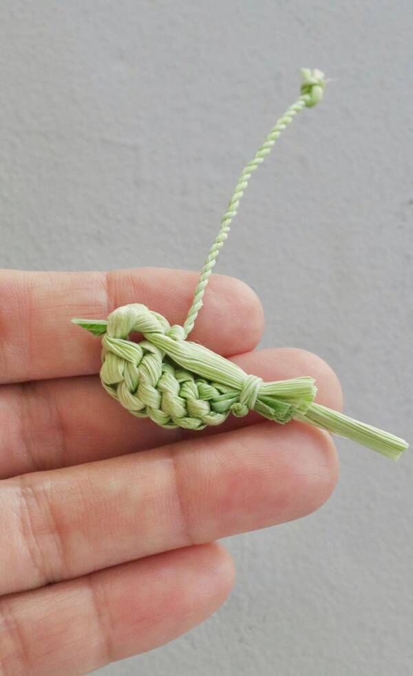 トウモロコシの皮一枚を4等分にし、丈夫な皮の紐で仮留めして胴体を編みます。頭の部分は三つ編みです。一本残した皮を半分に割いて、三つ編みの真ん中の皮を結び留めます。仮留めを外して翼と尾羽をまとめて結びます。持つところは作らなくても。嘴は楊枝でもです。編集が下手ですみません pic.twitter.com/I3y8eZyLD5