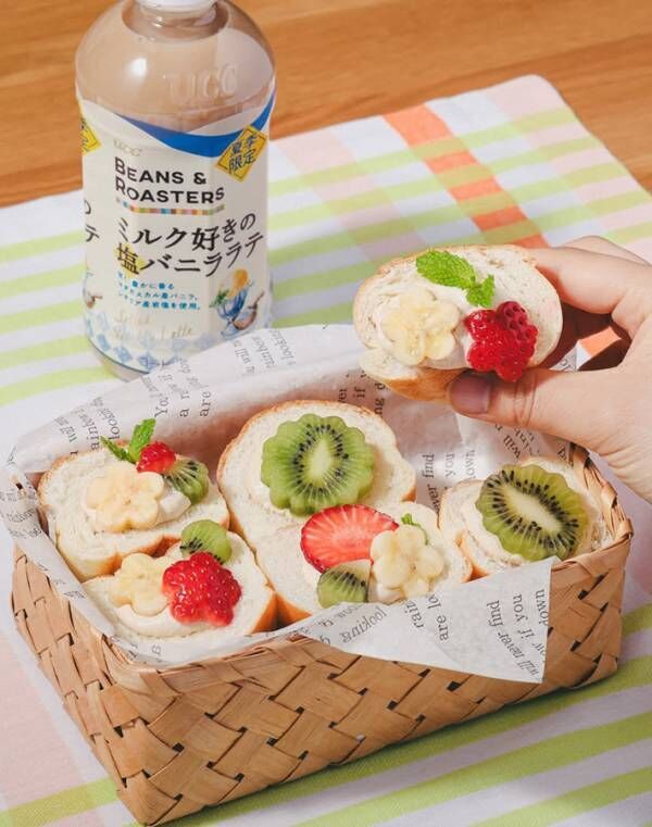 UCC上島珈琲株式会社(以下、UCC)のInstagramアカウント(uccueshimacoffee)が紹介したのは、ロールパンで作る『巻かないフルーツロールサンド』。