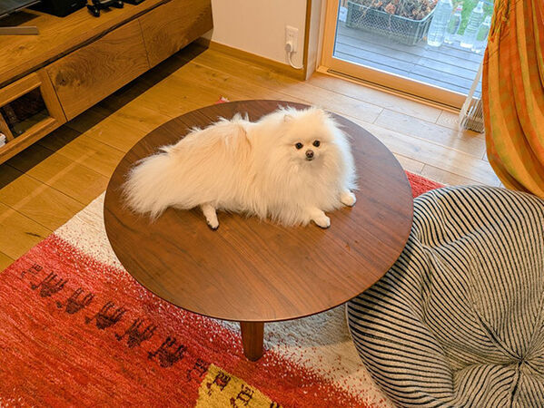 ぱぴちちゃんの、新しいお気に入りの場所は、飼い主さんが使っているローテーブルだったのです…!