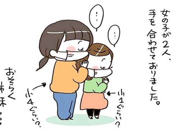 ある日、犬の散歩をしていたmiwasowmenさん。近所にある神社の前を通り過ぎようとしたら、姉妹と思しき2人の女の子を見かけて…。
