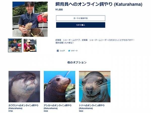 ウェブサイトで『ベストセラー』順に表示をするとカワウソの次に表示されるほど人気が高い、飼育員へのエサやりプラン。
