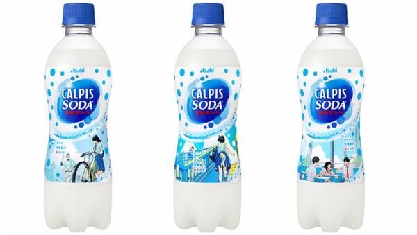 ちなみに、カルピスソーダには、イラストレーターの田中寛崇さんが『部活』『帰り道』『教室』のイメージで描いたデザインが、正面のみに施されています。