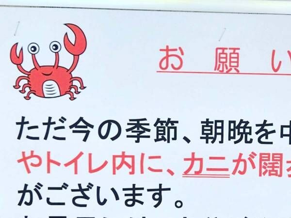 只今の季節、朝晩を中心にホームやトイレ内にカニがかっぽしている時がございます。