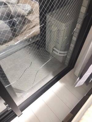 窓に、ヒビが入っています!