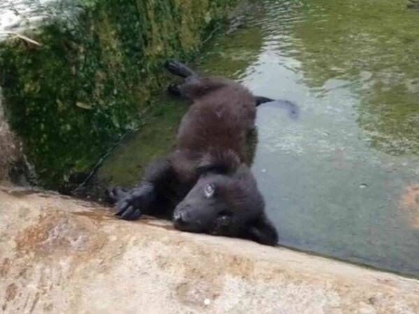 2019年4月、シンガポールに住む男性が放水路で倒れている子犬を発見しました。そのメスの子犬は自力で起き上がることができず、助けを求めるように男性のことをじっと見つめていたのです。