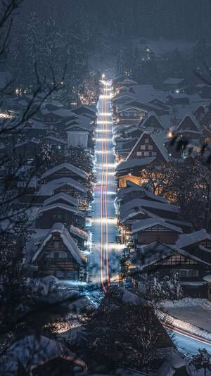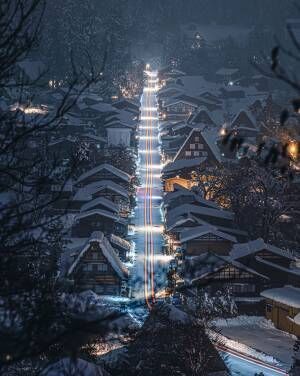 夜中、雪が降り積もる美しい白川郷を撮影していたところ、偶然1台の車が通り、ある有名映画のような写真になったといいます。その写真がこちら!
