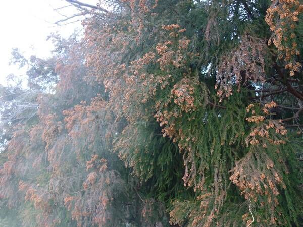 スギやヒノキなどの花粉によって、くしゃみなどのアレルギー反応を起こす花粉症。