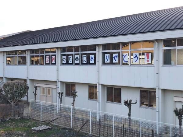 中学生たちが紙1枚ずつに文字を大きく書いて、消火活動をしてくれた消防士たちに向けて感謝のメッセージを送っていたのです。