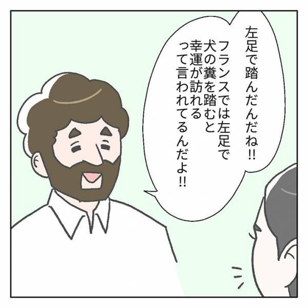 「フランスでは、左足で犬のフンを踏むと、幸運が訪れるっていわれているよ」