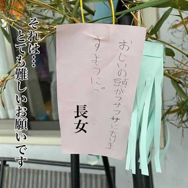 すると、おじいちゃんも「無料で毛が生えてきますように」と、毛量の増加を願う短冊を書きます。