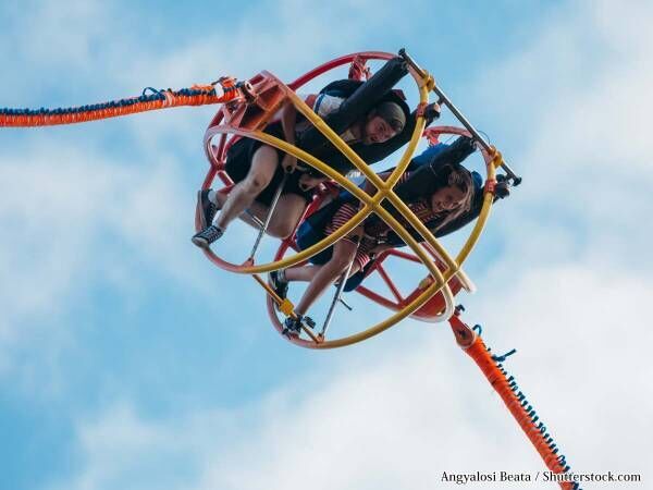 スリングショットは、地上から一気に空へ向かって投げ出される逆バンジーのようなもので、絶叫マシンが好きな人には人気の乗り物です。