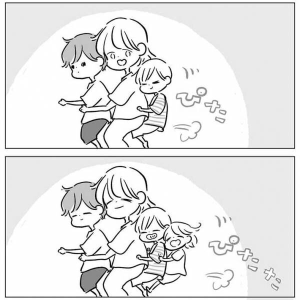 ハルくんの成長に気付いたbethさんは、そっと息子の背中に寄り添うようにくっつきます。