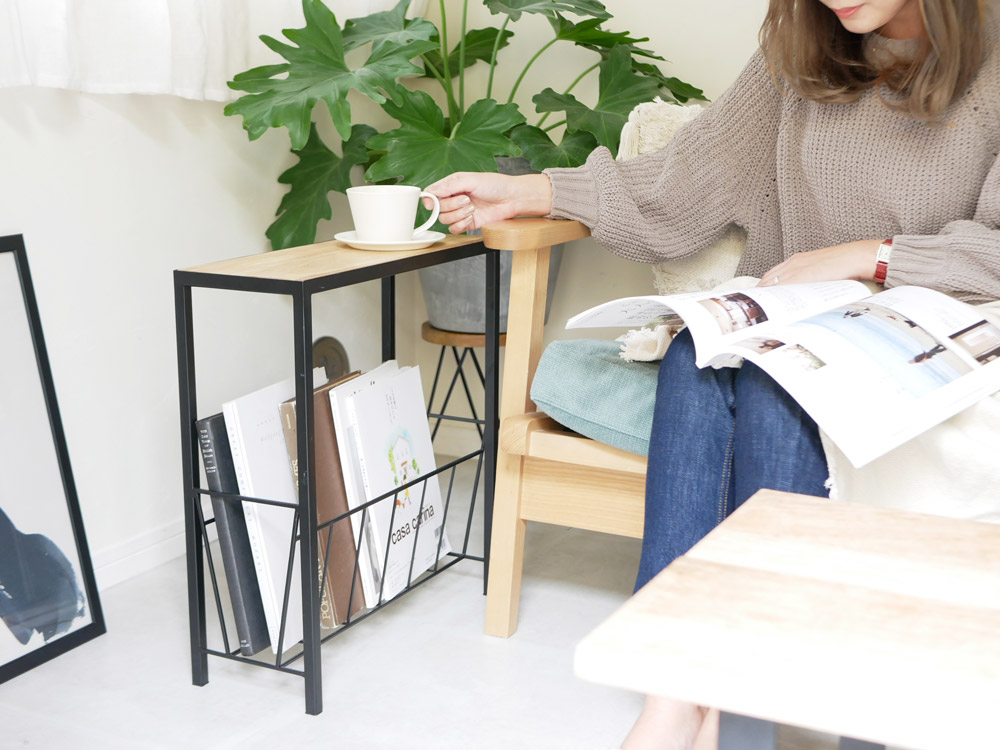 マガジンラック×サイドテーブルというリビングに欲しい2つの役割を兼ね備えたスグレモノ。