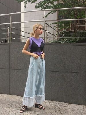 今買って、秋まで着れるラメキャミ。どんなお洋服とも合わせやすいグレーは、1枚あると便利。