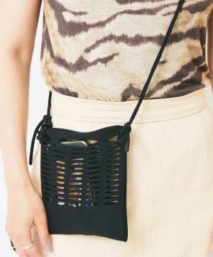 一本の糸から編み上げた、軽くてやわらかなニットポシェット。貴重品が入るサイズ感で、ワンマイルバッグとして活躍しそう!