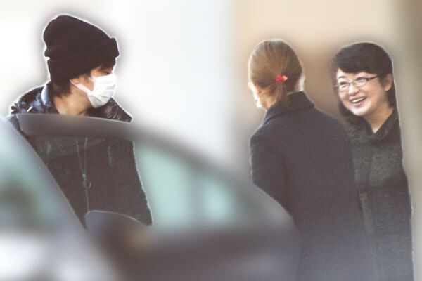 今年1月、帰省にきた祐太朗夫婦を見送る百恵さん。