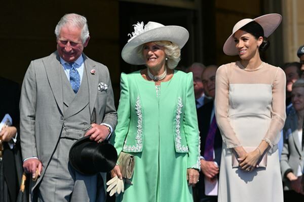 2018年5月、挙式後初の公務でチャールズ皇太子夫妻と園遊会に出席したメーガン夫人(写真:代表撮影/ロイター/アフロ)