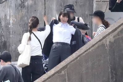 22年4年、月9ドラマ『競争の番人』ロケで終始笑顔で撮影に臨んでいた杏