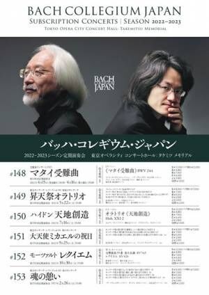 世界最高峰のバッハ演奏団体「バッハ・コレギウム・ジャパン(BCJ)」の2022-23シーズン定期演奏会及び、ヨーロッパ公演(2022年10月30日〜11月12日)についての概要が発表された。